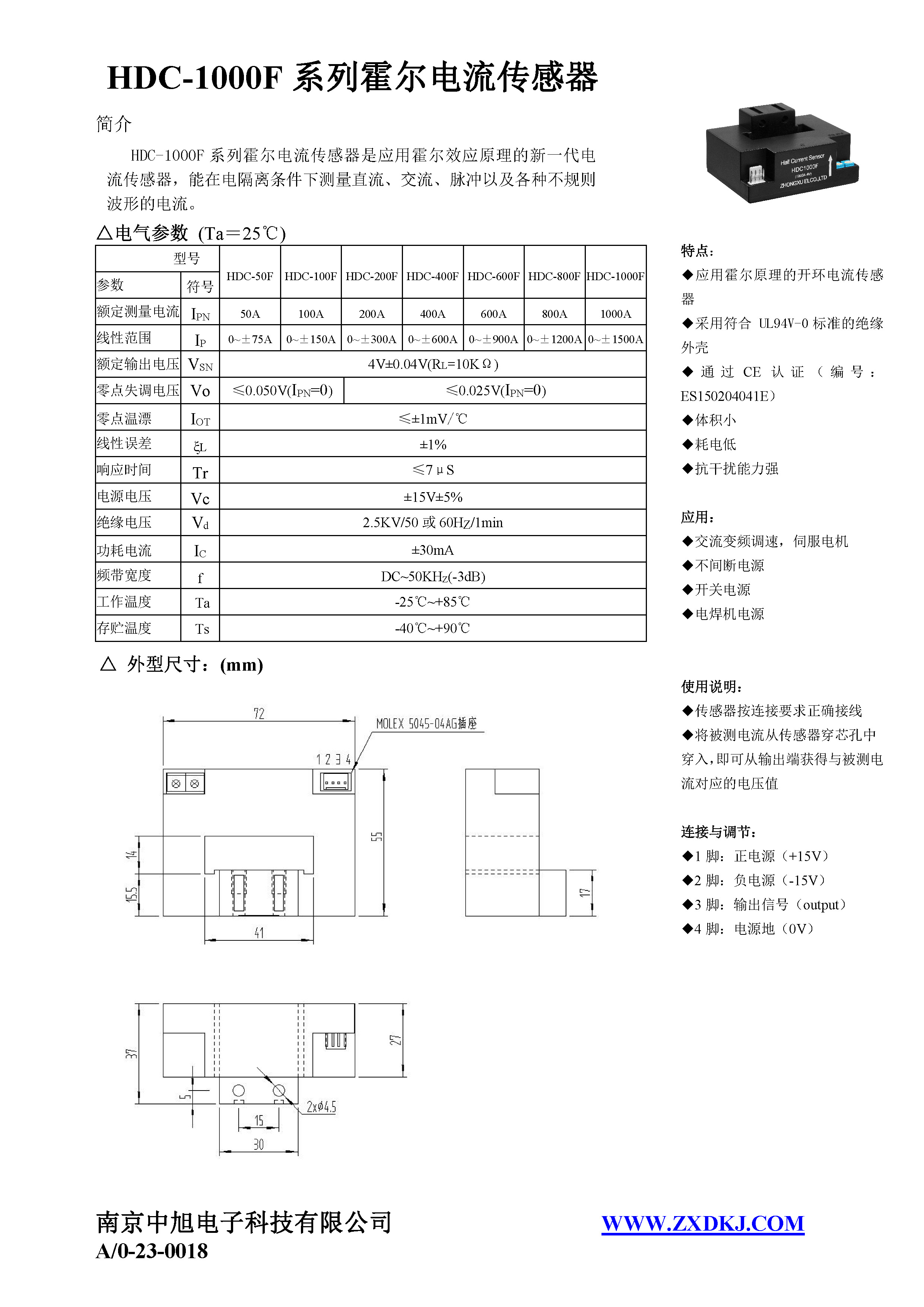 HDC-1000F系列霍爾電流傳感器是應(yīng)用霍爾效應(yīng)原理的新一代電流傳感器,能在電隔離條件下測量直流、交流、脈沖以及各種不規(guī)則波形的電流。