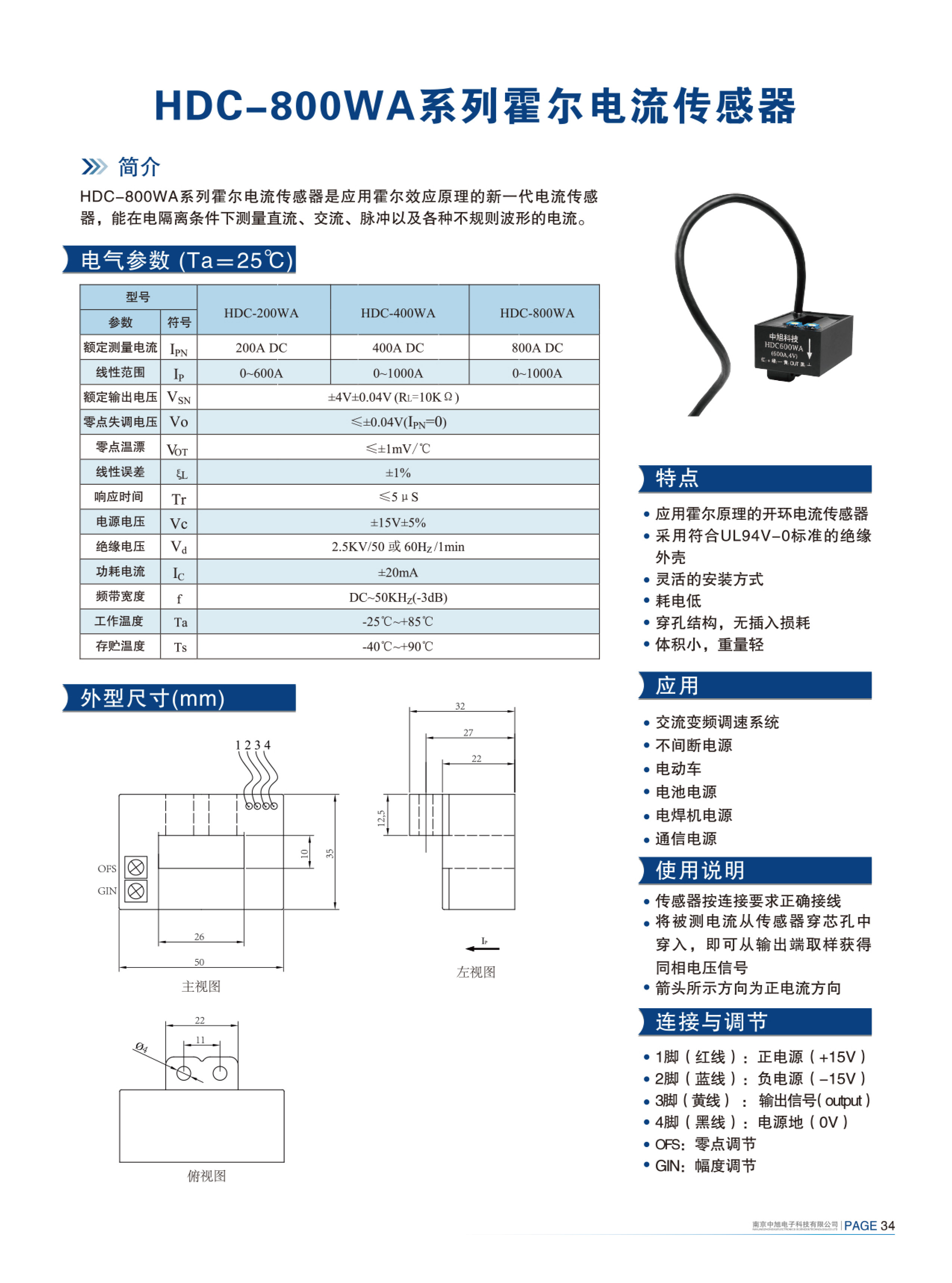HDC-600WA系列霍爾電流傳感器是應(yīng)用霍爾效應(yīng)原理的新一代電流傳感器,能在電隔離條件下測量直流、交流、脈沖以及各種不規(guī)則波形的電流。