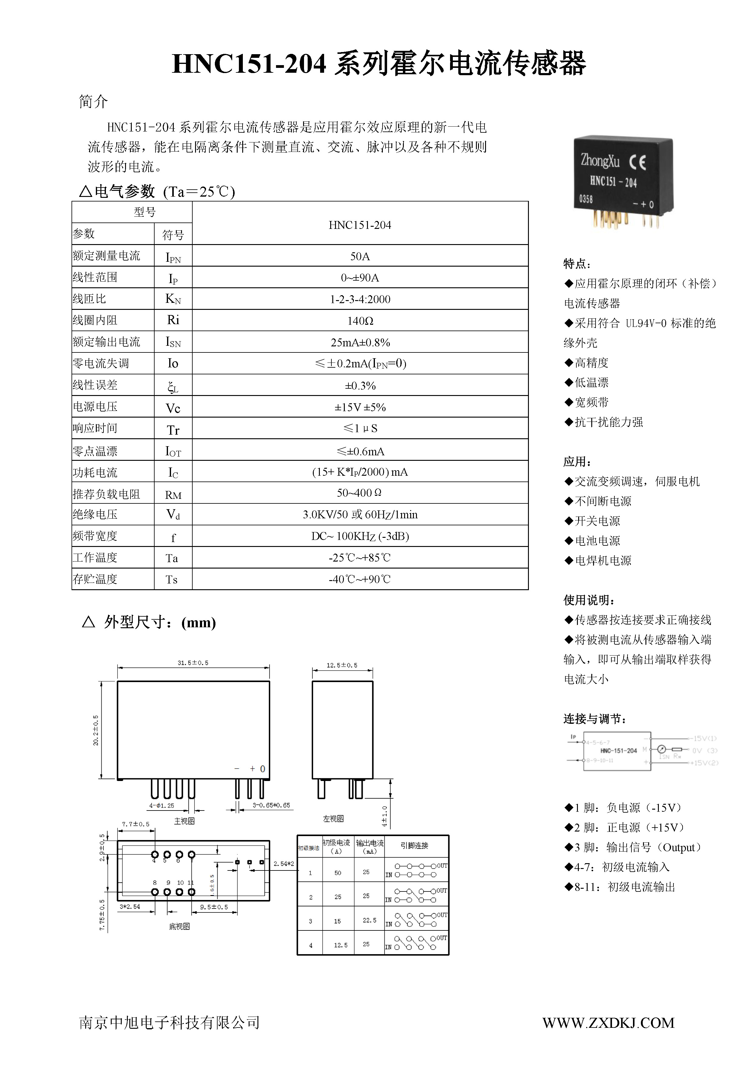 HNC151-204系列霍爾電流傳感器是應用霍爾效應原理的新一代電流傳感器,能在電隔離條件下測量直流、交流、脈沖以及各種不規(guī)則波形的電流。